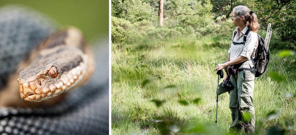 Cette biologiste mène depuis près de 35 ans des études de terrain sur la population de vipères au Groot Schietveld