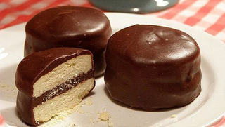 Alfajor latino-américain : un snack sucré, surtout populaire en Argentine, en Uruguay et au Pérou, constitué de deux tranches de gâteau mou nappées de chocolat et fourrées d’une garniture sucrée au caramel – le dulce de leche. Un sandwich pour les palais sucrés.