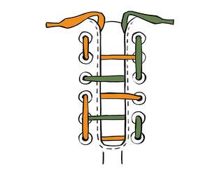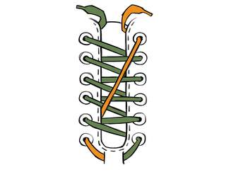 Enfilez une moitié de lacets de façon diagonale de bas en haut et l'autre moitié en croix. Le nez de votre chaussure sera alors légèrement relevé et vos orteils auront plus d'espace.